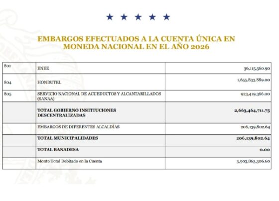 Tegucigalpa, Honduras. La Secretaría de Finanzas reveló que los embargos judiciales contra la Cuenta Única del Estado suman 3,903.8 millones…