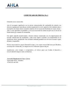 En el comunicado, las aerolíneas reiteraron su compromiso de mantener la conectividad aérea en todo el territorio hondureño.