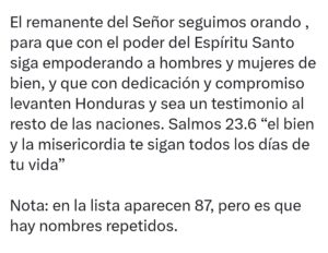Finalmente, Roy Santos cerró su mensaje con un llamado de carácter espiritual, afirmando que continúa orando para que Dios fortalezca a hombres y mujeres que, desde el poder público, trabajen con dedicación y compromiso por la reconstrucción de Honduras, citando el Salmo 23:6 como expresión de fe y esperanza para el país.