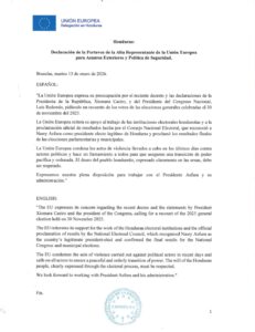 En un pronunciamiento firme, la UE condenó los hechos de violencia registrados en los últimos días contra actores políticos y llamó a las autoridades y a todos los sectores a garantizar una transición de poder pacífica, ordenada y constitucional, respetando el mandato ciudadano y fortaleciendo el Estado de derecho en Honduras.